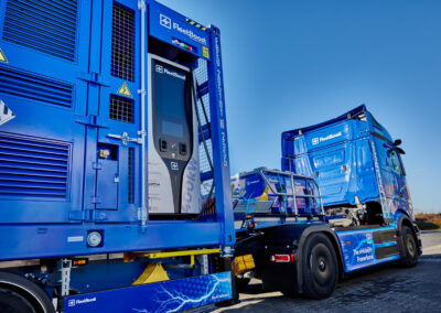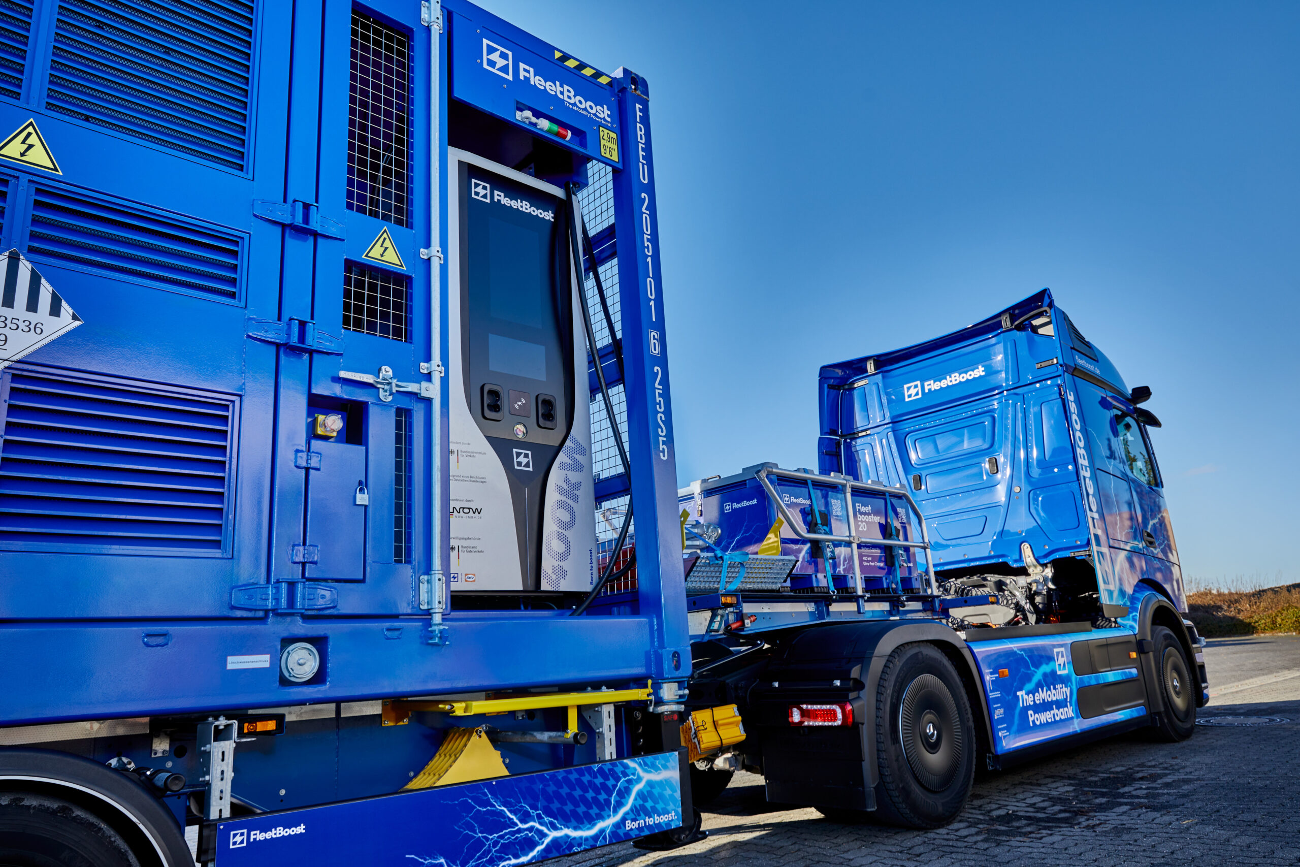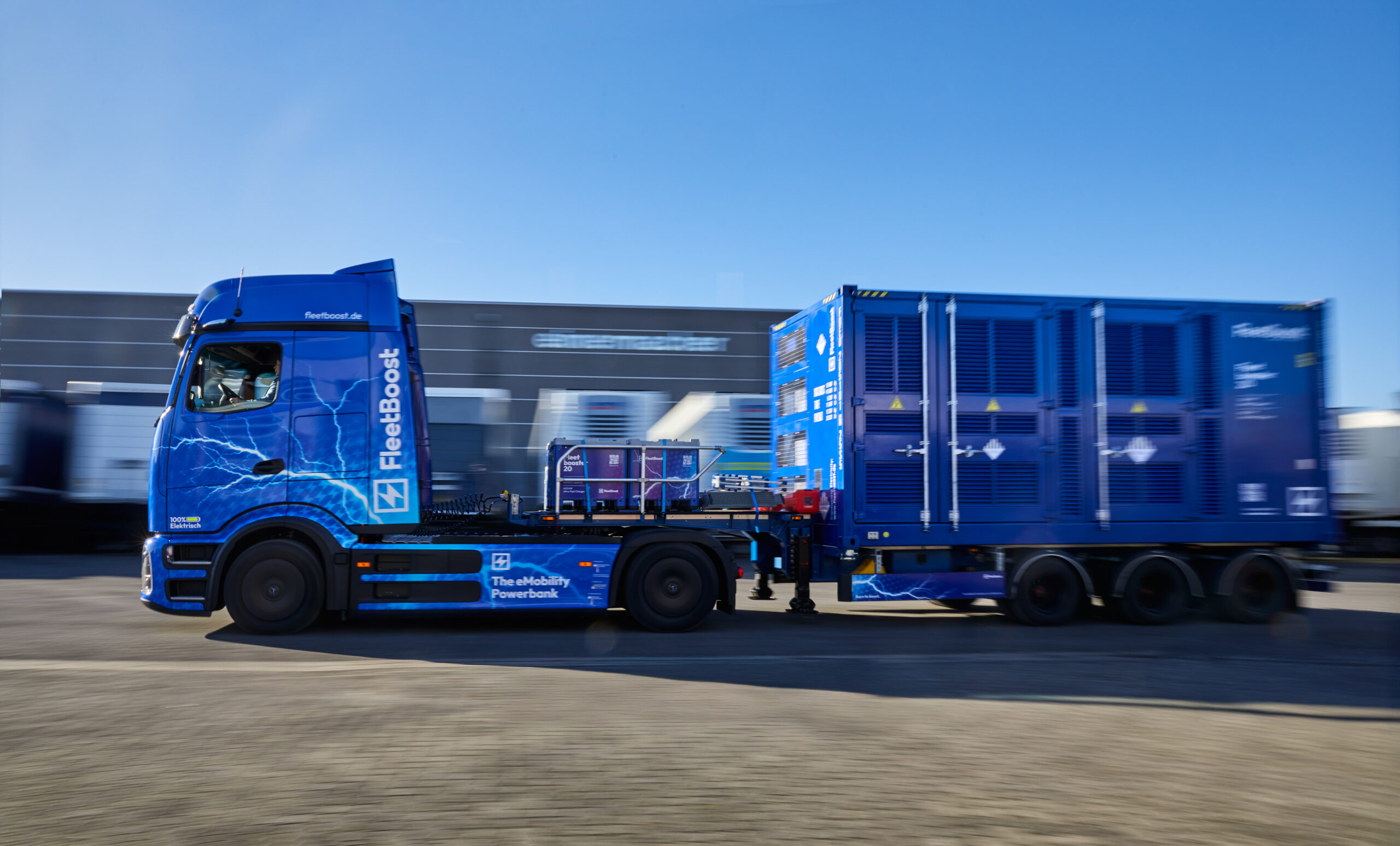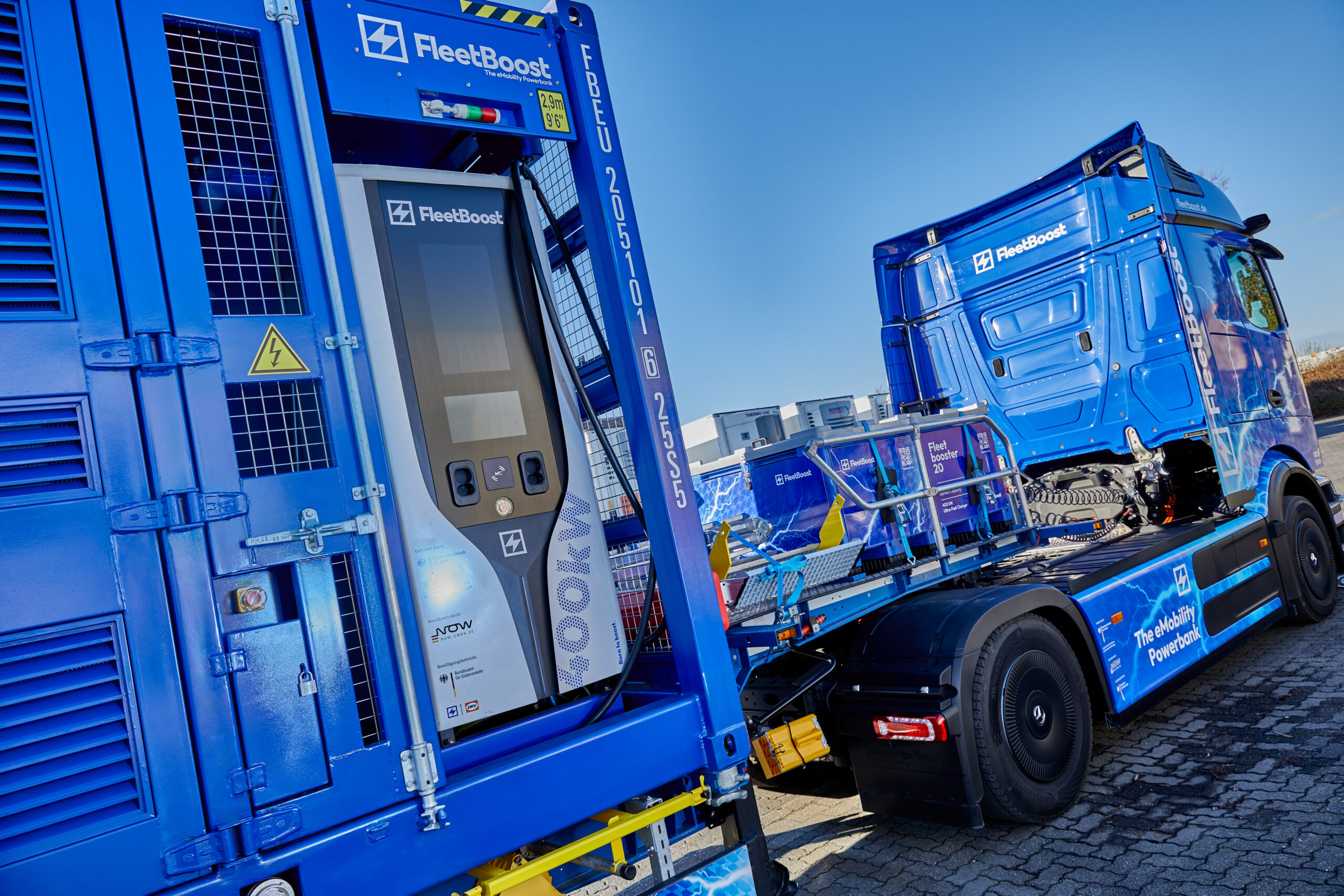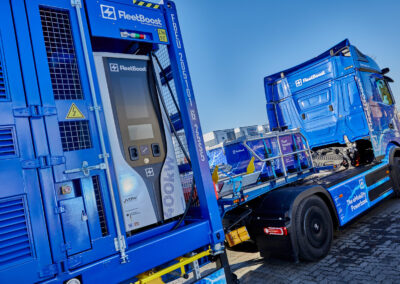 Erleben Sie den Fleetboost 20 im echten Einsatz: Unser mobiler Batteriespeicher zeigt im Zusammenspiel mit dem Mercedes eActros, wie flexibel, leistungsstark und netzentlastend moderne BESS-Technologie heute arbeitet. Machen Sie sich selber ein Eindruck von Leistung, Ladegeschwindigkeit und Einsatzmöglichkeiten.