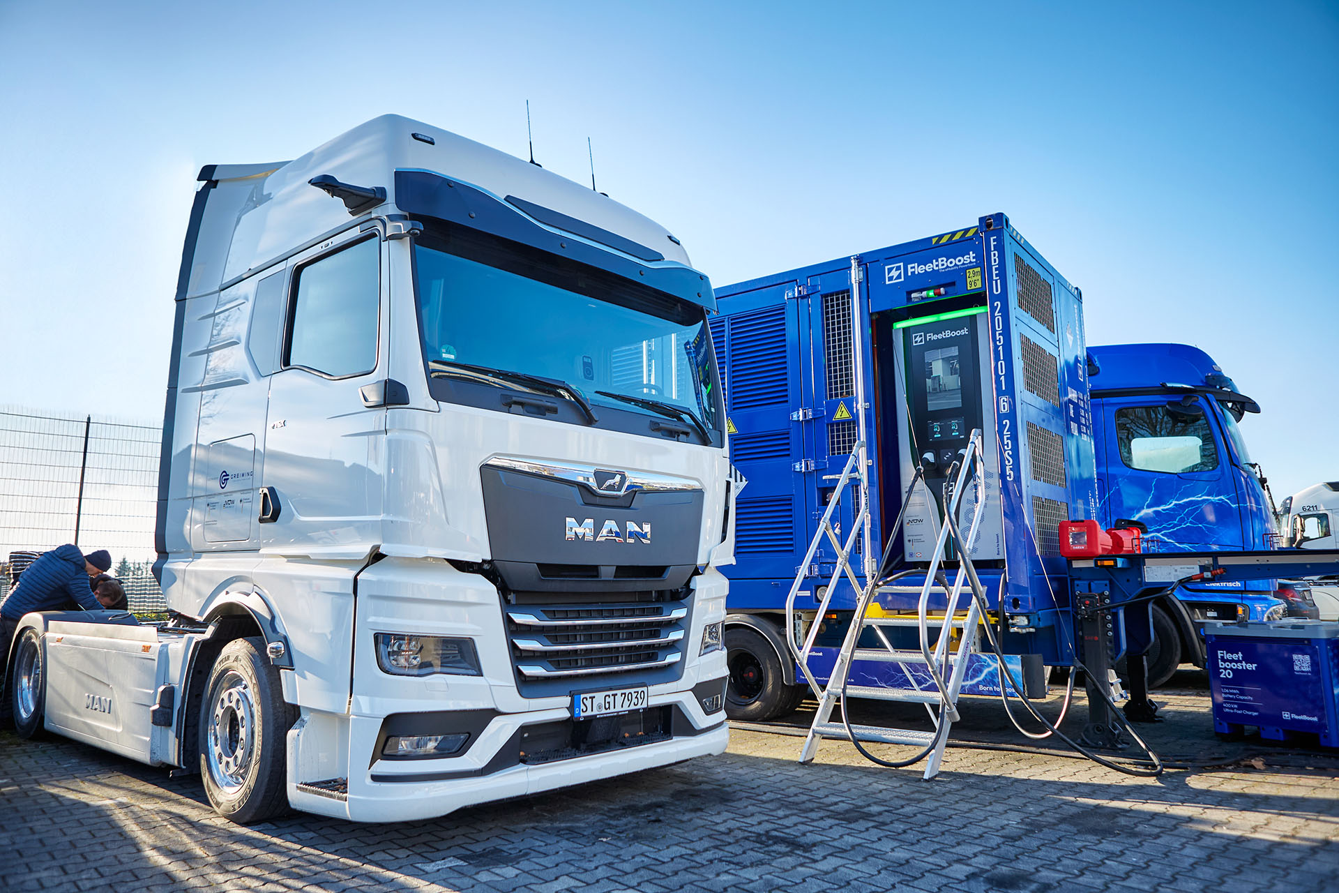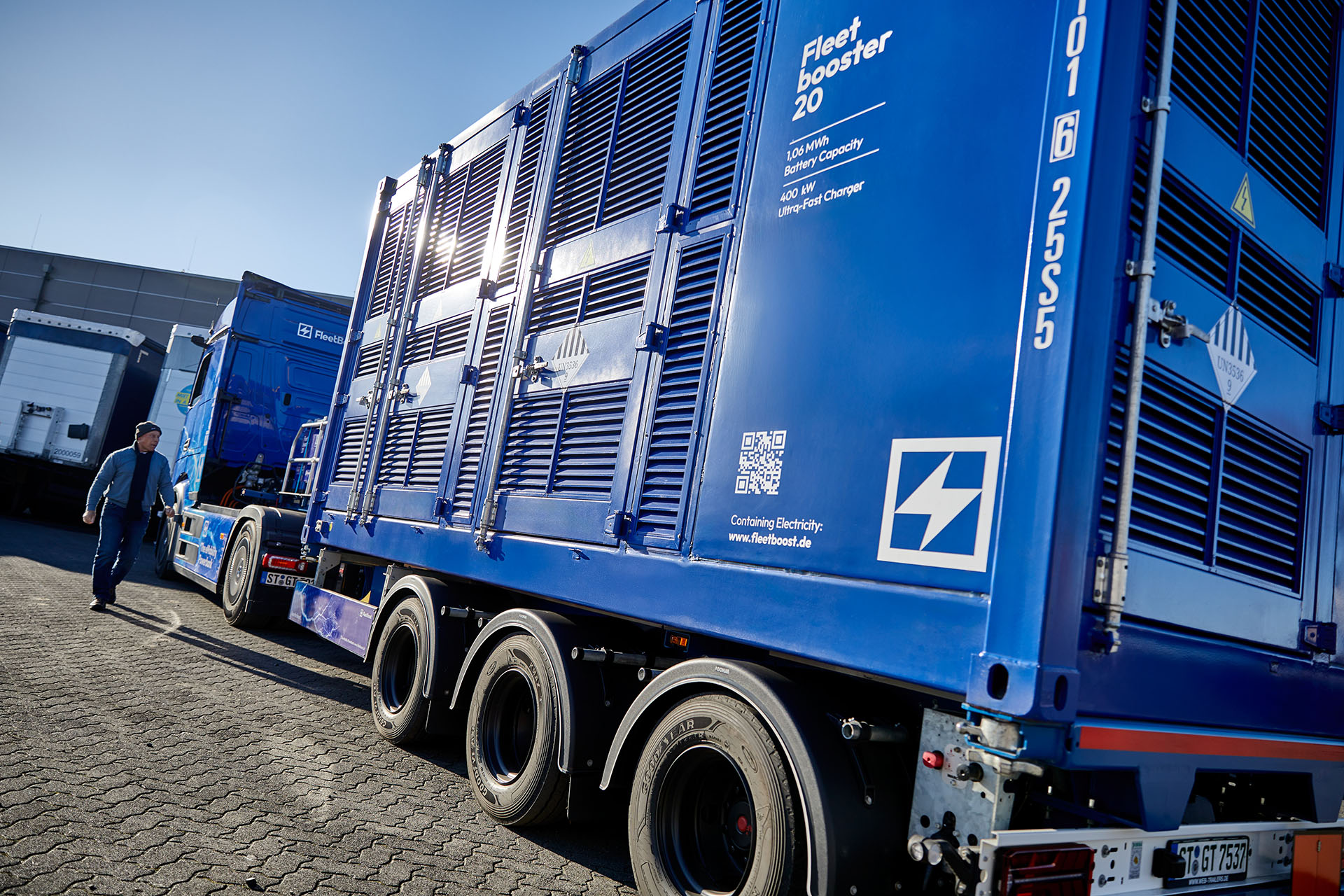 Der Fleetbooster 20 ist die kompakte Lösung unter den mobilen eMobility-Powerbanks – leistungsstark, flexibel und ideal für den vielseitigen Einsatz auch im urbanen Raum oder bei begrenztem Platzangebot. Untergebracht in einem 20-Fuß-High-Cube-Container, bietet er maximale Mobilität und ist schnell einsatzbereit. Mit einer Batteriekapazität von 1,06 MWh liefert der Fleetbooster 20 zuverlässig Energie – über eine 400-kW-Ultra-Schnellladesäule mit zwei Ladepunkten sowie CEE- und Powerlock-Anschlüsse. Dank Plug-and-Play-Konzept ist er unmittelbar betriebsbereit – ohne aufwendige Infrastrukturmaßnahmen.