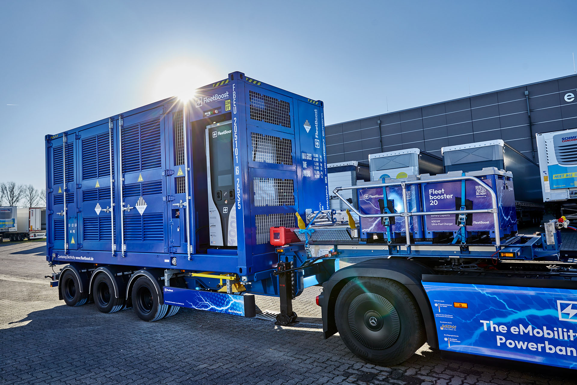 Die mobilen Batteriepufferspeicher von Fleetboost sind die ideale Lösung, um elektrische Energie bedarfsorientiert, effizient und unabhängig bereitzustellen – sei es zur Vermeidung von Lastspitzen, zur Versorgung von Schnellladestationen oder als autarke Energiequelle bei temporären Einsätzen.